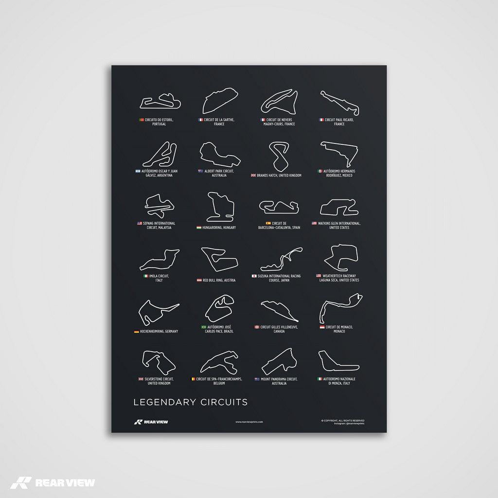 Zum ersten Mal können Sie legendäre Rennstrecken wie Spa in Belgien, Mount Panorama in Australien und Brands Hatch im Vereinigten Königreich auf einem erstklassigen Autokunstposter bestaunen.