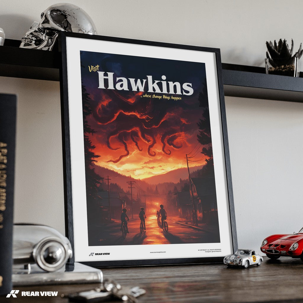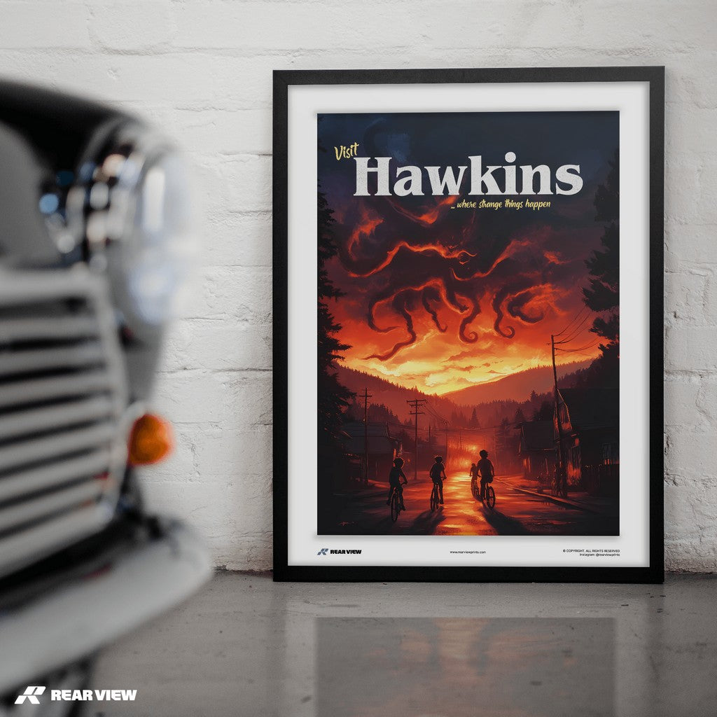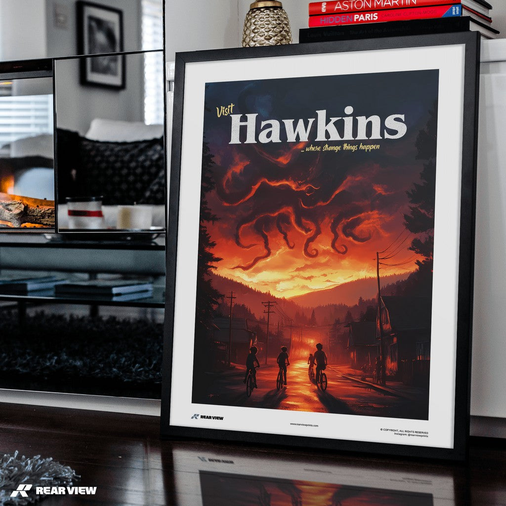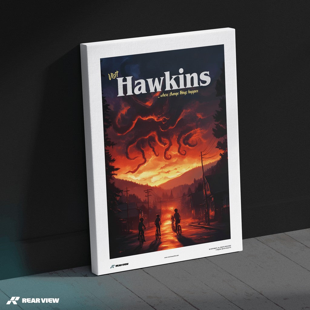 Step into the eerie small town of Hawkins, where mystery lurks in the shadows and danger looms in the sky. Inspired by the world of Stranger Things, this striking artwork captures the mix of nostalgia and horror that defines the cult-favorite sci-fi series. Perfect for fans of supernatural thrills and 80s-inspired adventures.