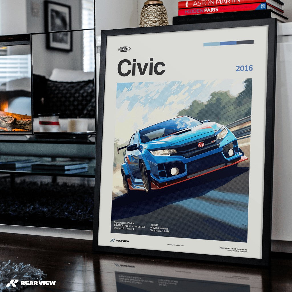 Whether as a treat for yourself or a thoughtful gift for a fellow automotive enthusiast, the Honda Civic 2016 art print is sure to impress.