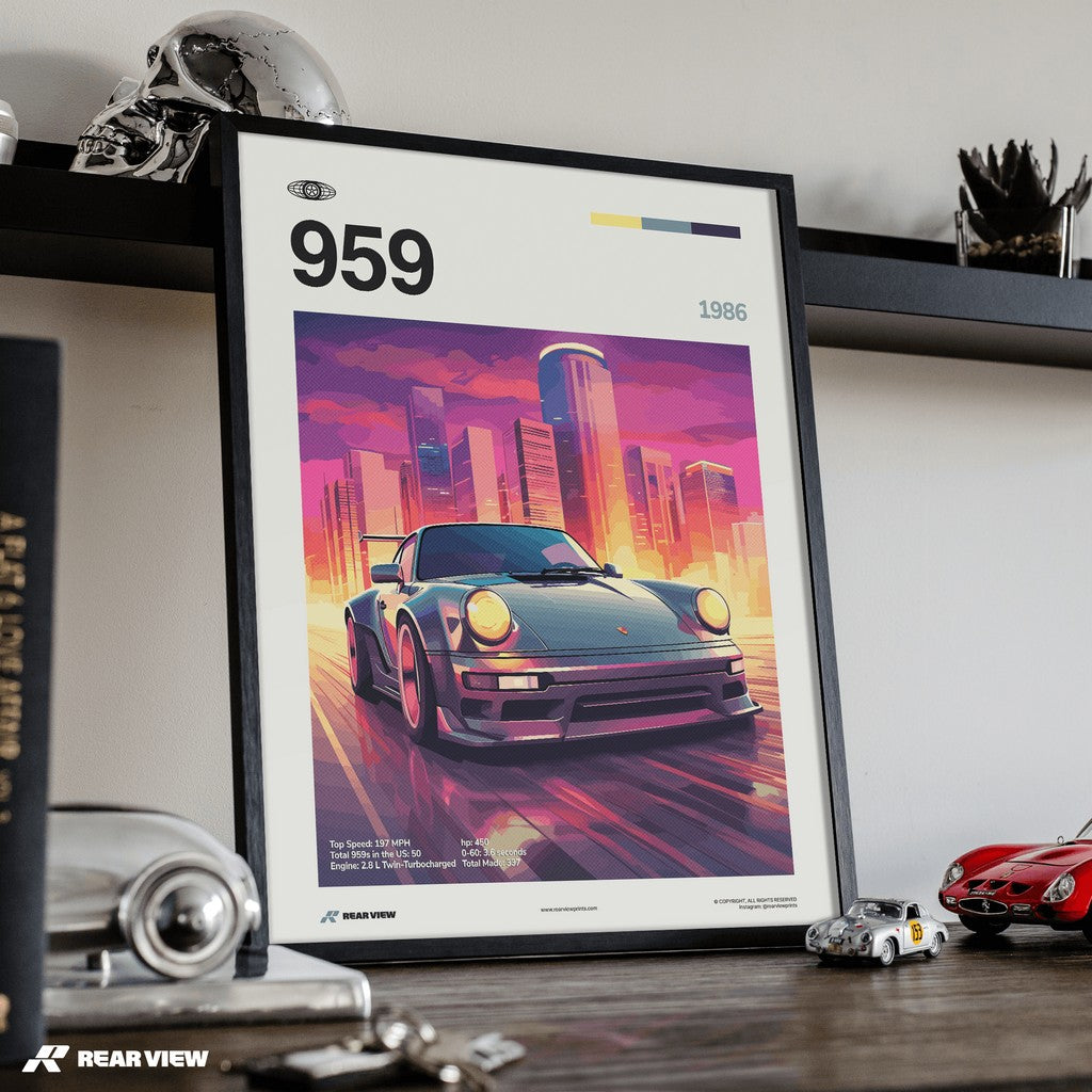 Whether as a treat for yourself or a thoughtful gift for a fellow automotive enthusiast, the Porsche 959 1986 art print is sure to impress.