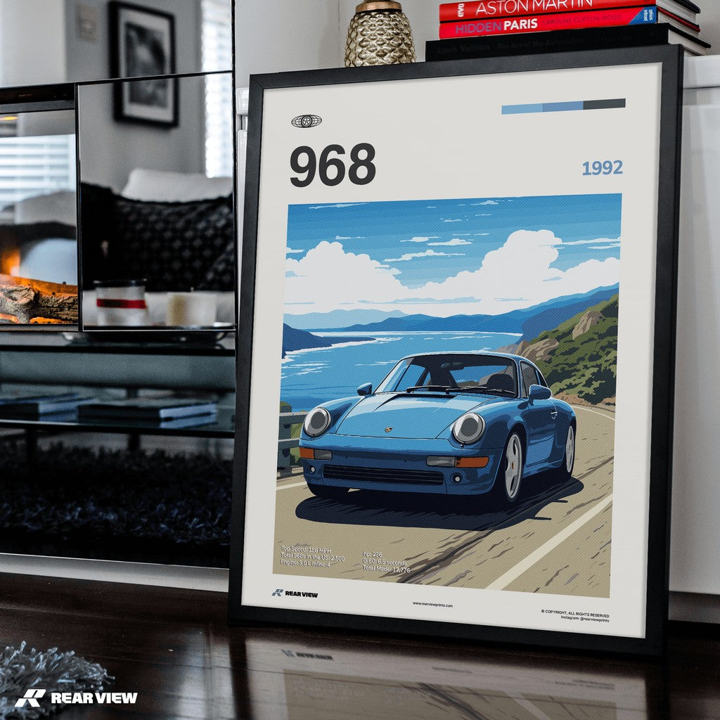 Bring a piece of automotive excellence into your space. Immerse yourself in the charm of automotive history where we pay homage to the legendary Porsche 968 1992!