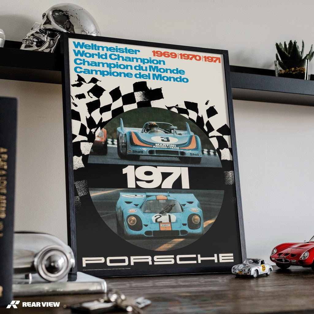 Bring a piece of automotive excellence into your space. Immerse yourself in the charm of automotive history where we pay homage to the legendary Porsche 1971 World Champion!