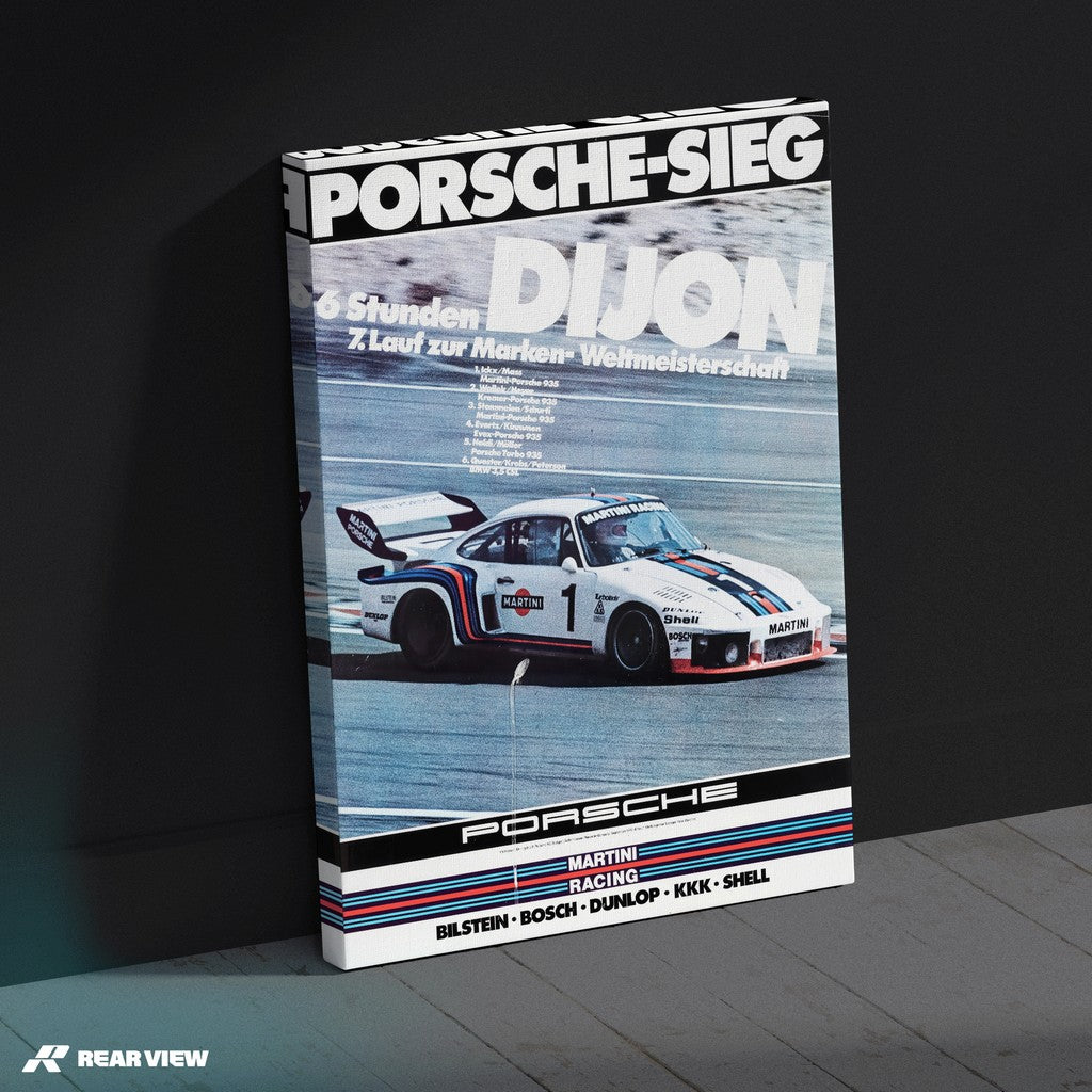 Holen Sie sich ein Stück automobile Exzellenz in Ihren Raum. Tauchen Sie ein in den Charme der Automobilgeschichte, wo wir dem legendären Porsche 935 bei den 6 Hours of Dijon 1976 huldigen !