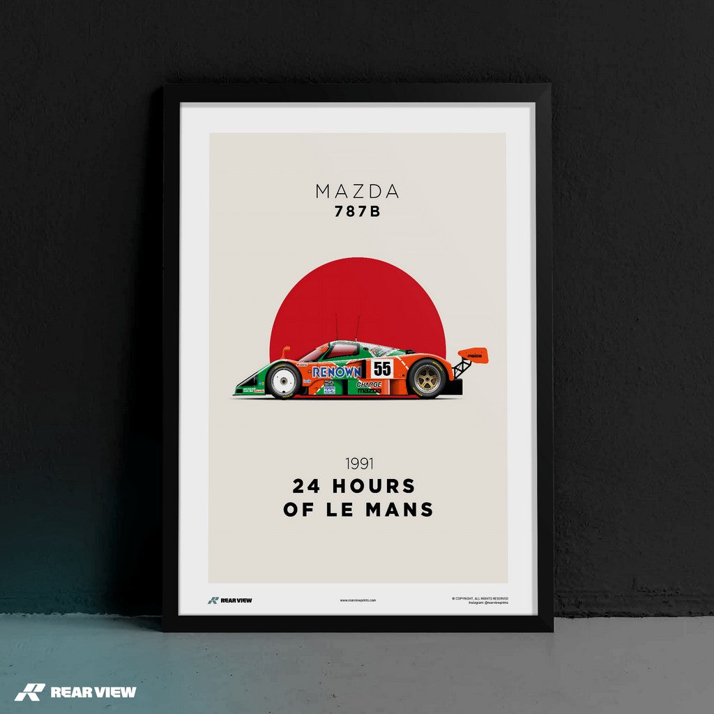 The 1991 Mazda 787b remains the only Japanese machine to ever win the legendary endurance competition. This beautiful motorsport poster shows the iconic Mazda 787b upon the recognizable red circle of the Japanese flag. Liven up your man cave or spice up your office space with this fantastic poster today.