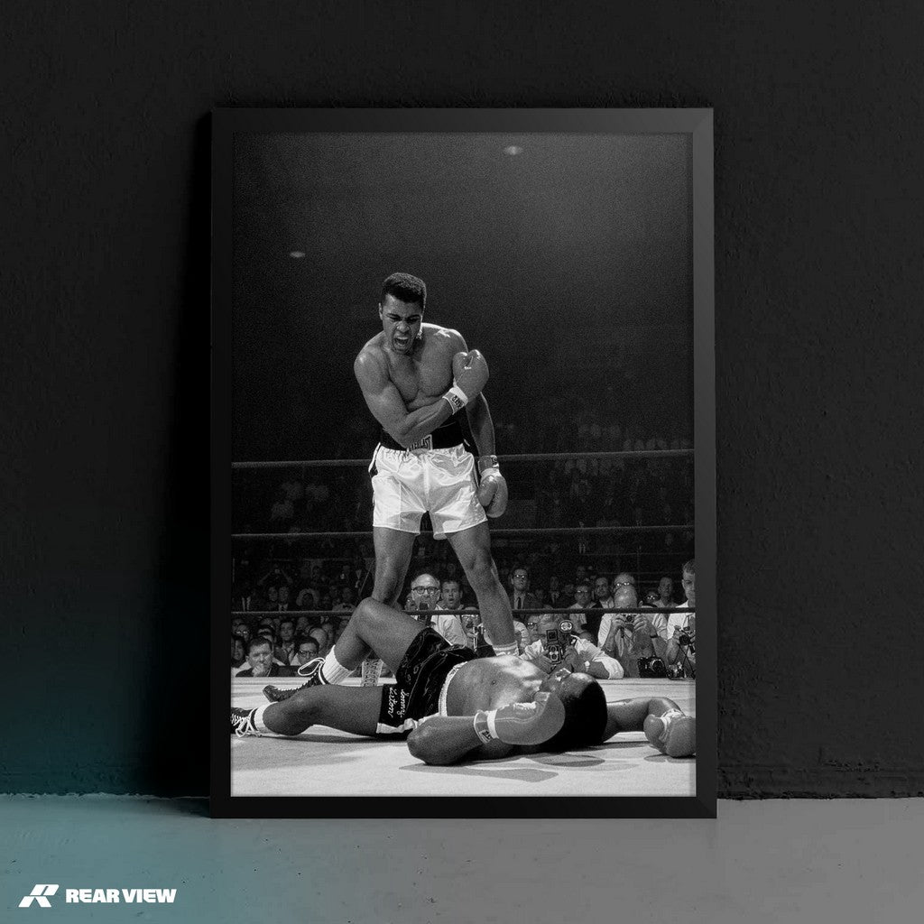 This piece freezes a ferocious second of victory of Muhammad Ali as a fighter towers over the canvas, muscles tight and energy roaring through the arena. It brings the rush of competition to any wall and sparks talk the moment someone sees it. Add it to your office or home, or wrap it as a gift for someone who lives for sporting grit.