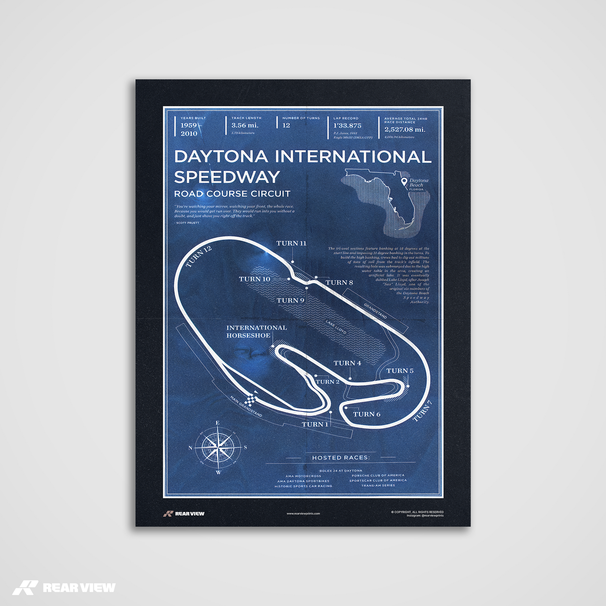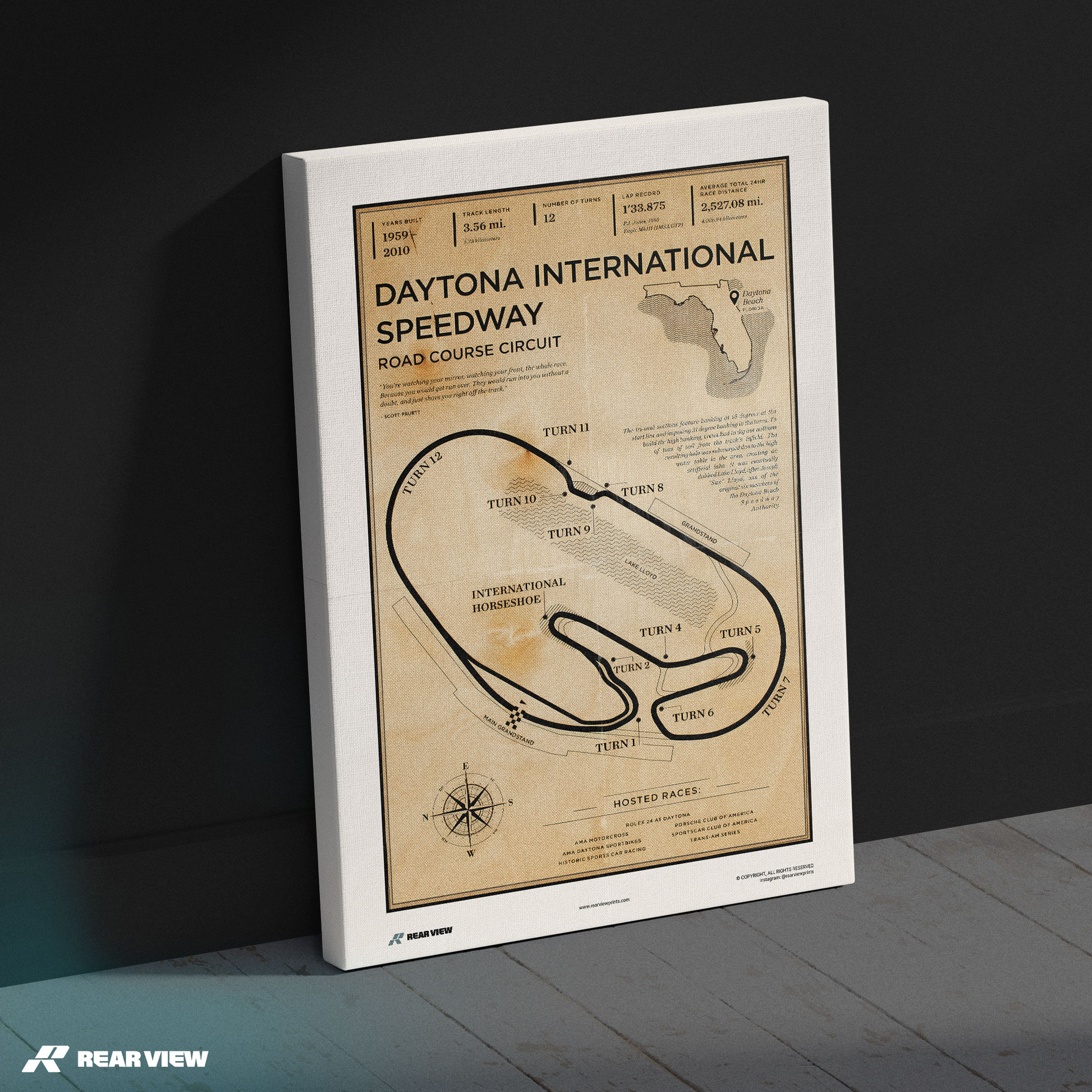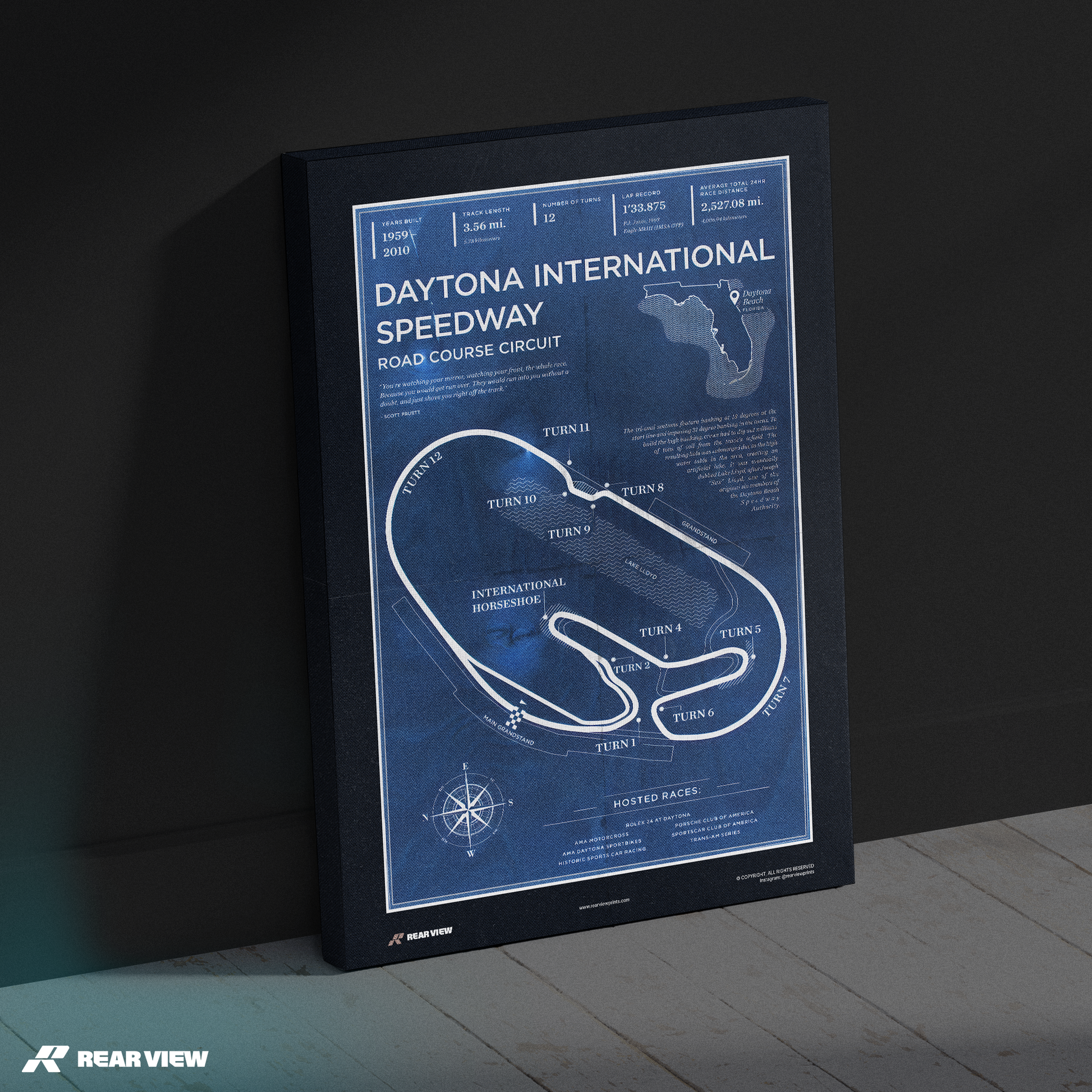 Che si tratti di un regalo per se stessi o di un pensiero per un collega appassionato di corse automobilistiche, la stampa d'arte vintage del Circuito di Daytona in Florida non mancherà di stupire.