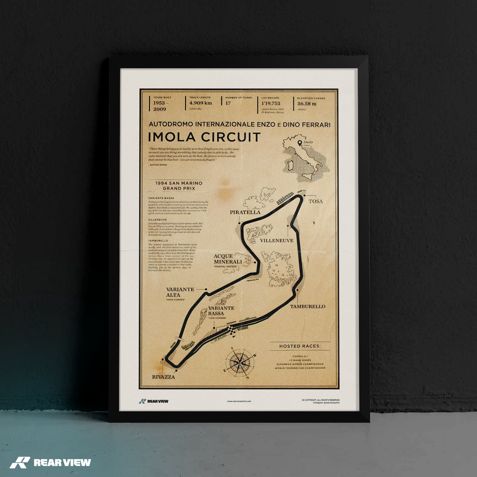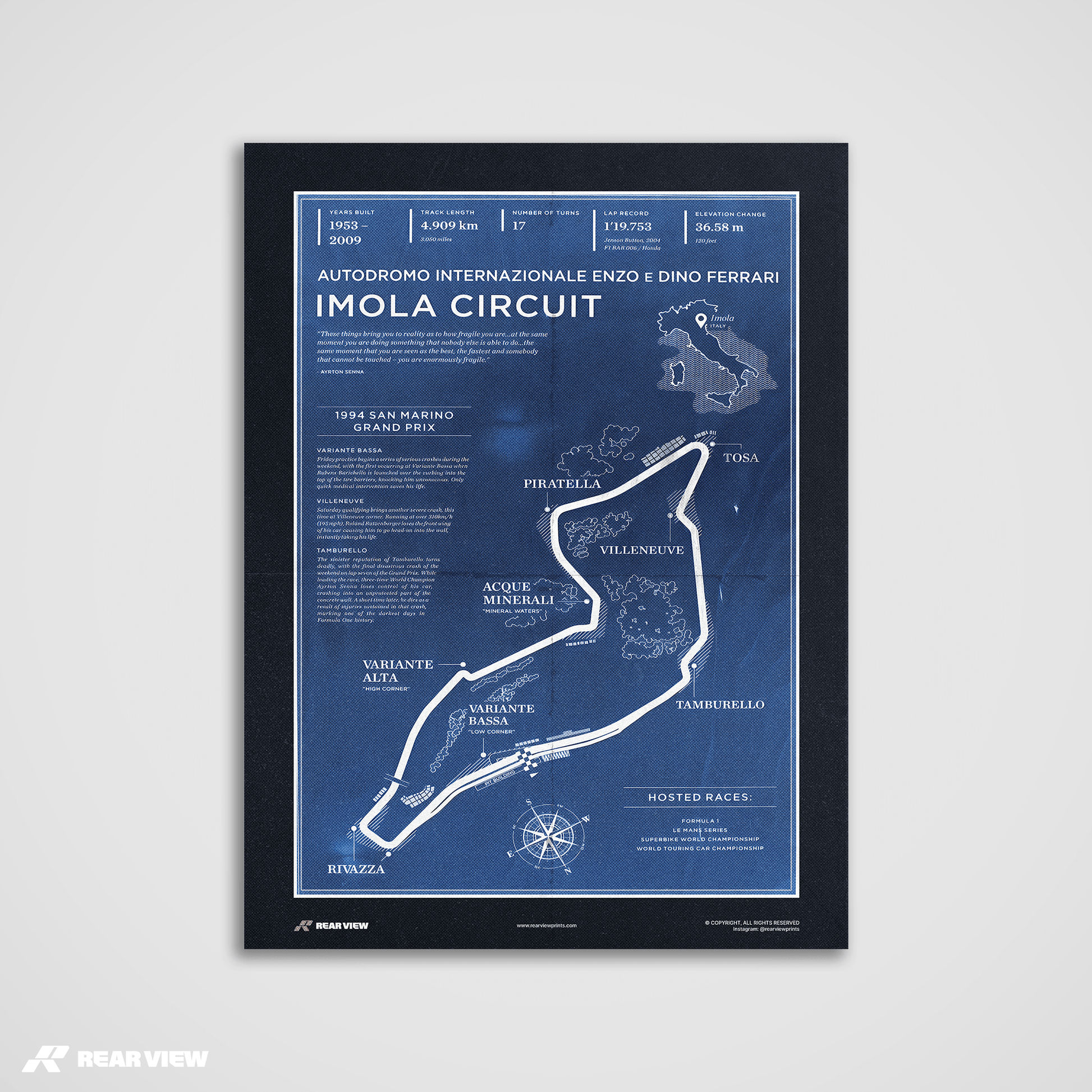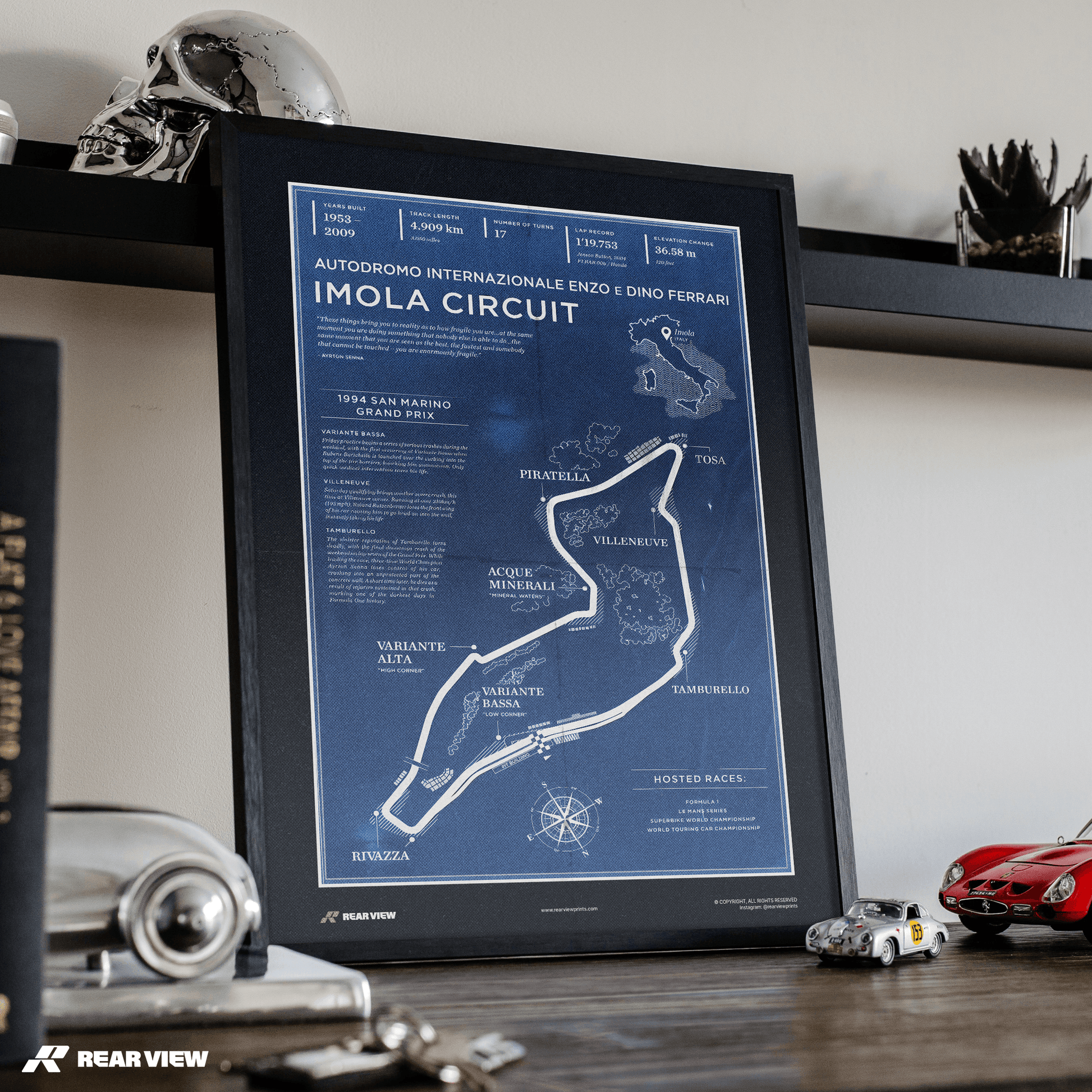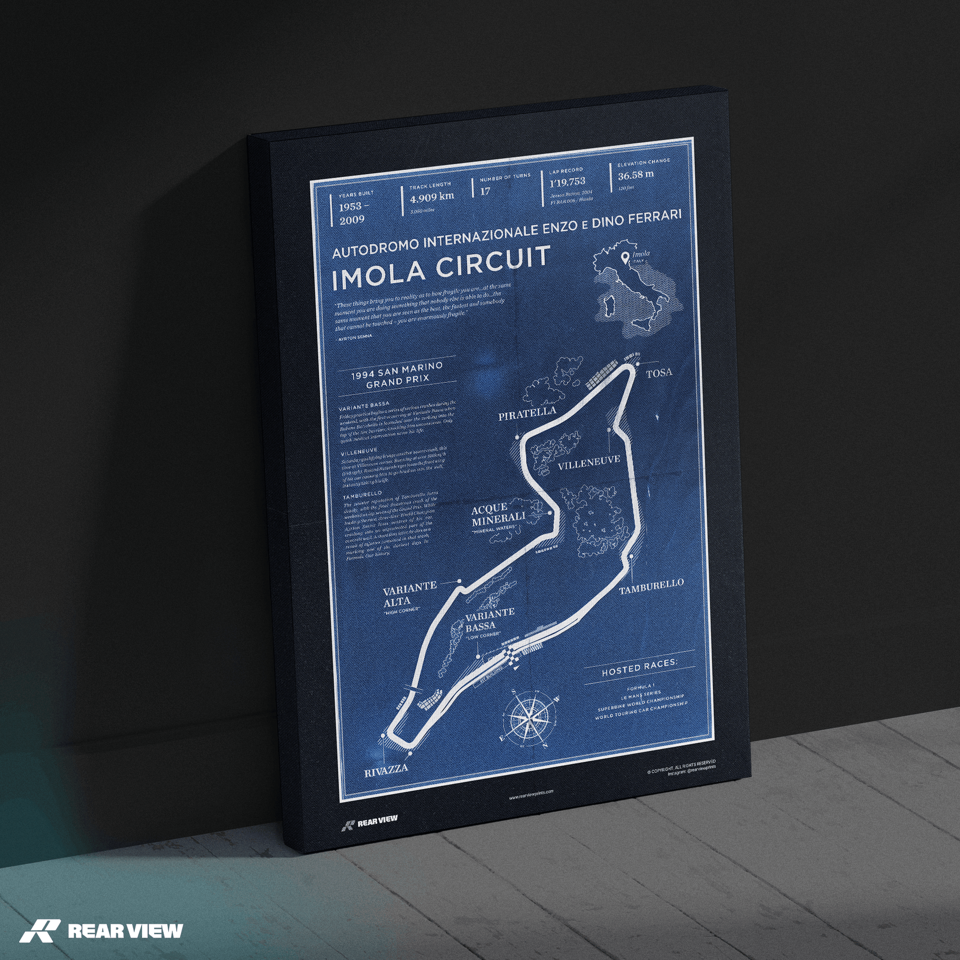 Bring a piece of racing history into your space. Immerse yourself in the charm of Motorsport legacy with Italy's iconic Imola Race Track!