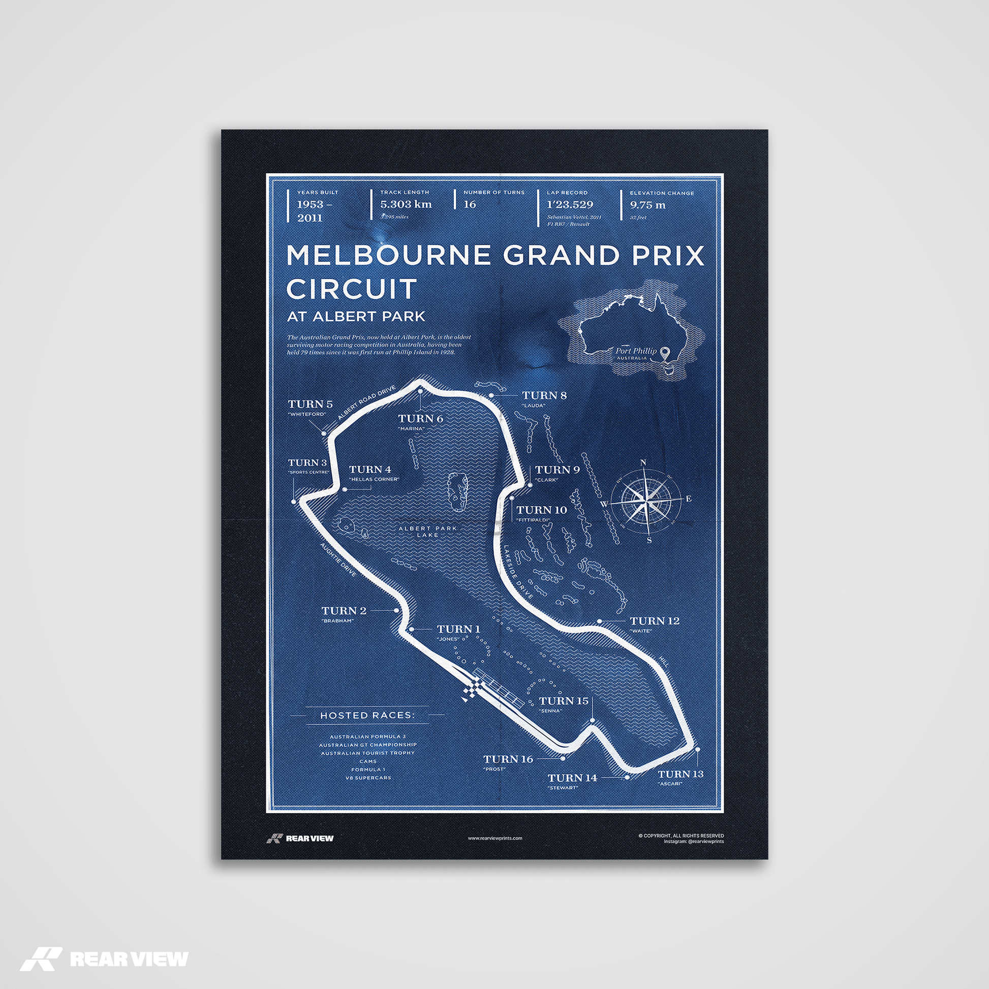 Portate un pezzo di storia delle corse nel vostro spazio. Immergetevi nel fascino dell'eredità Motorsport con l'iconica pista di Melbourne in Australia!