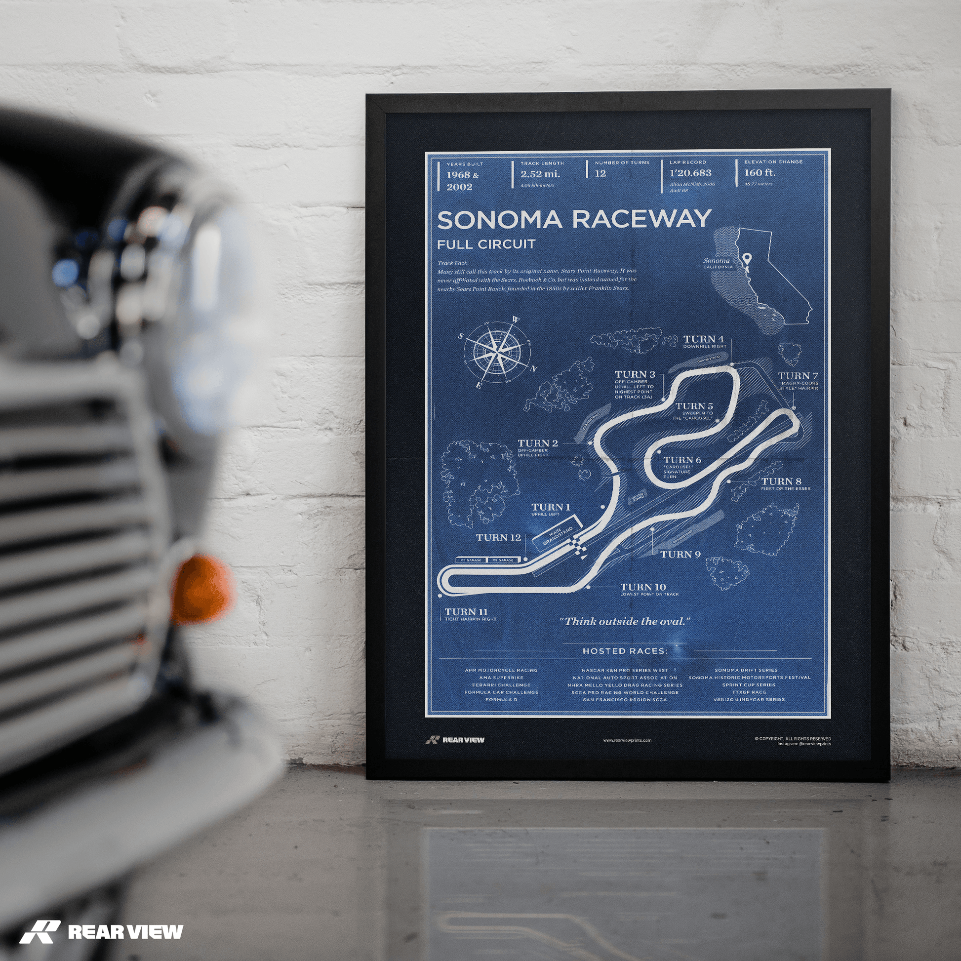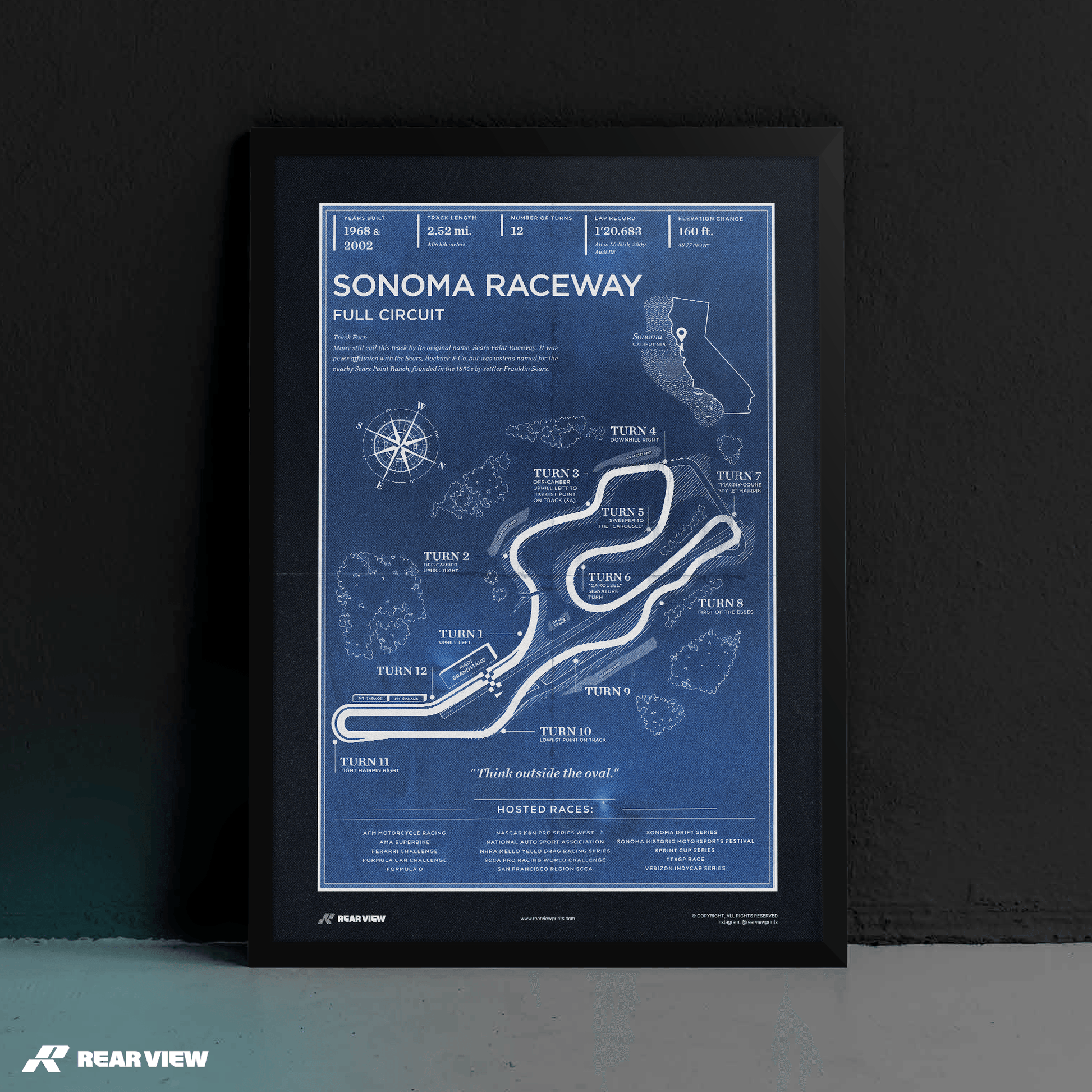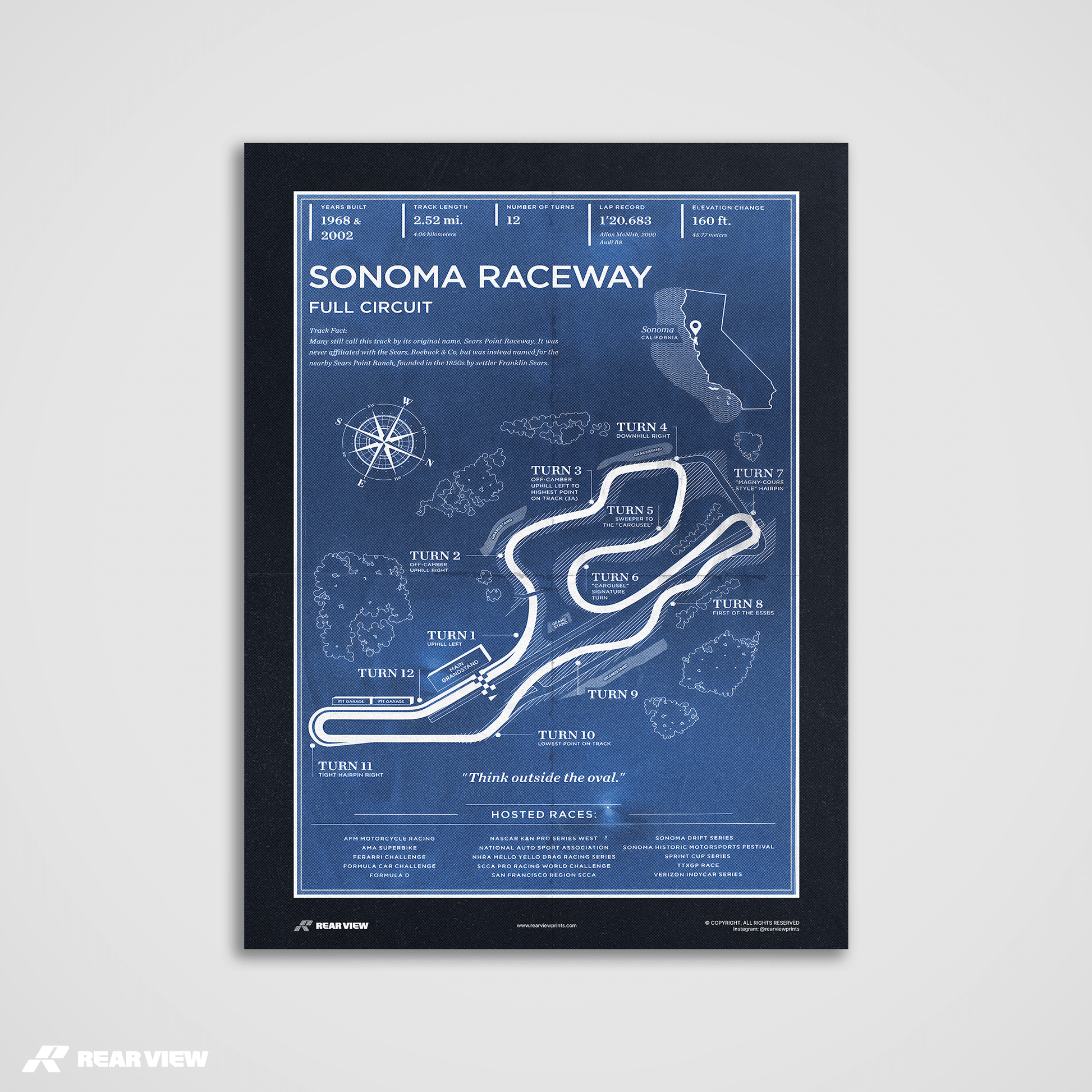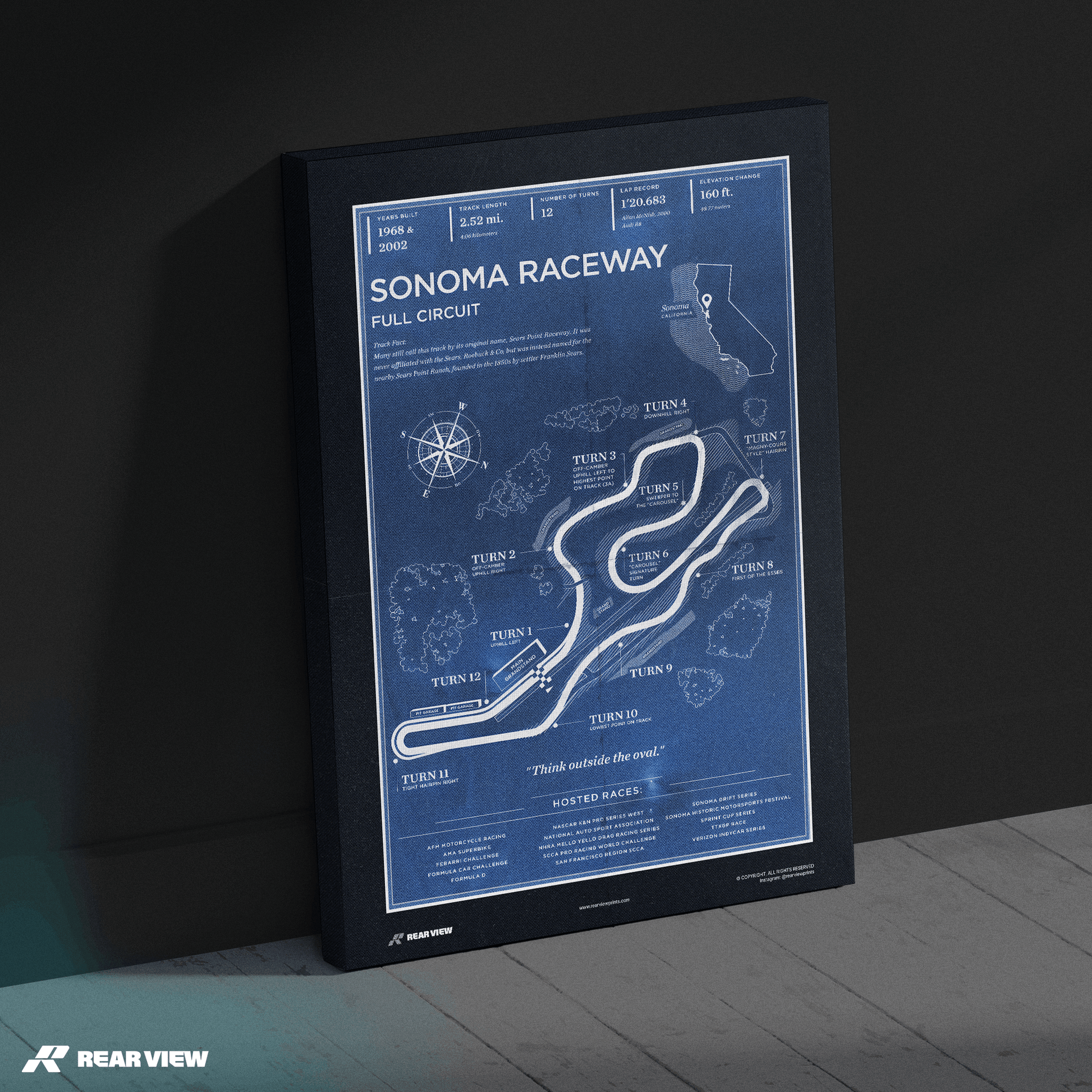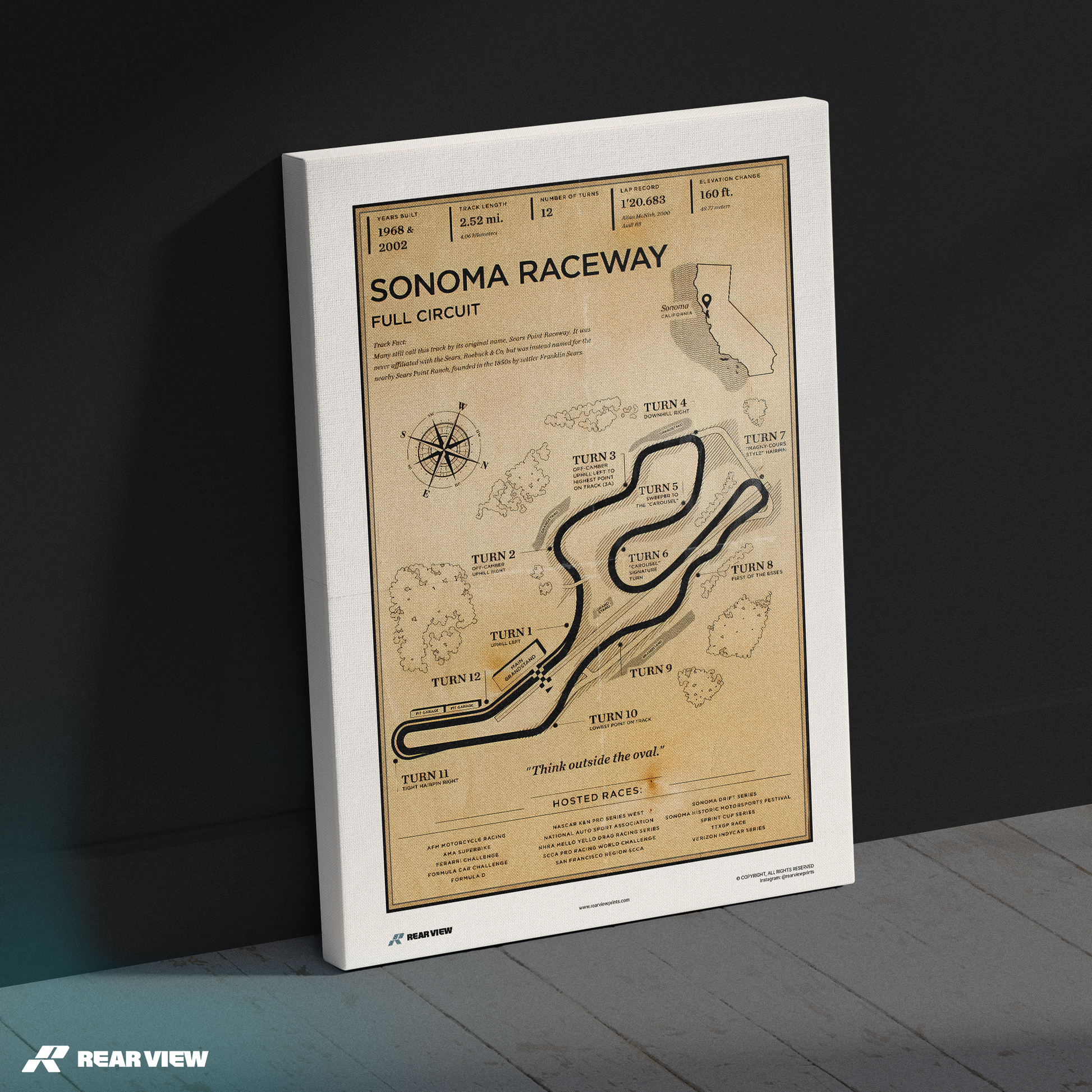 Bring a piece of racing history into your space. Immerse yourself in the charm of motorsport legacy with California's iconic Sonoma Raceway!