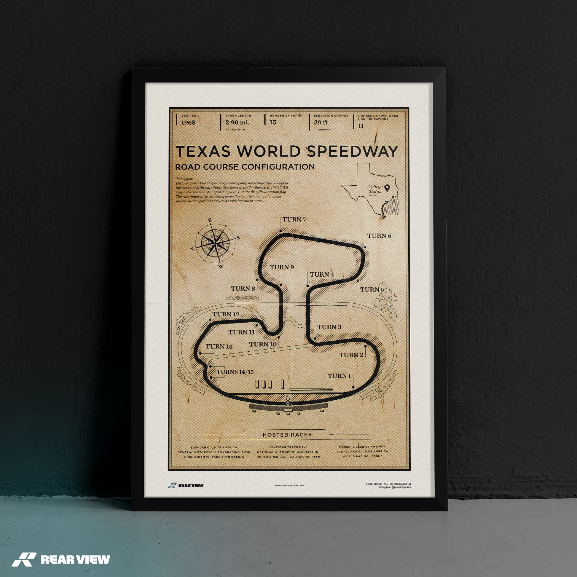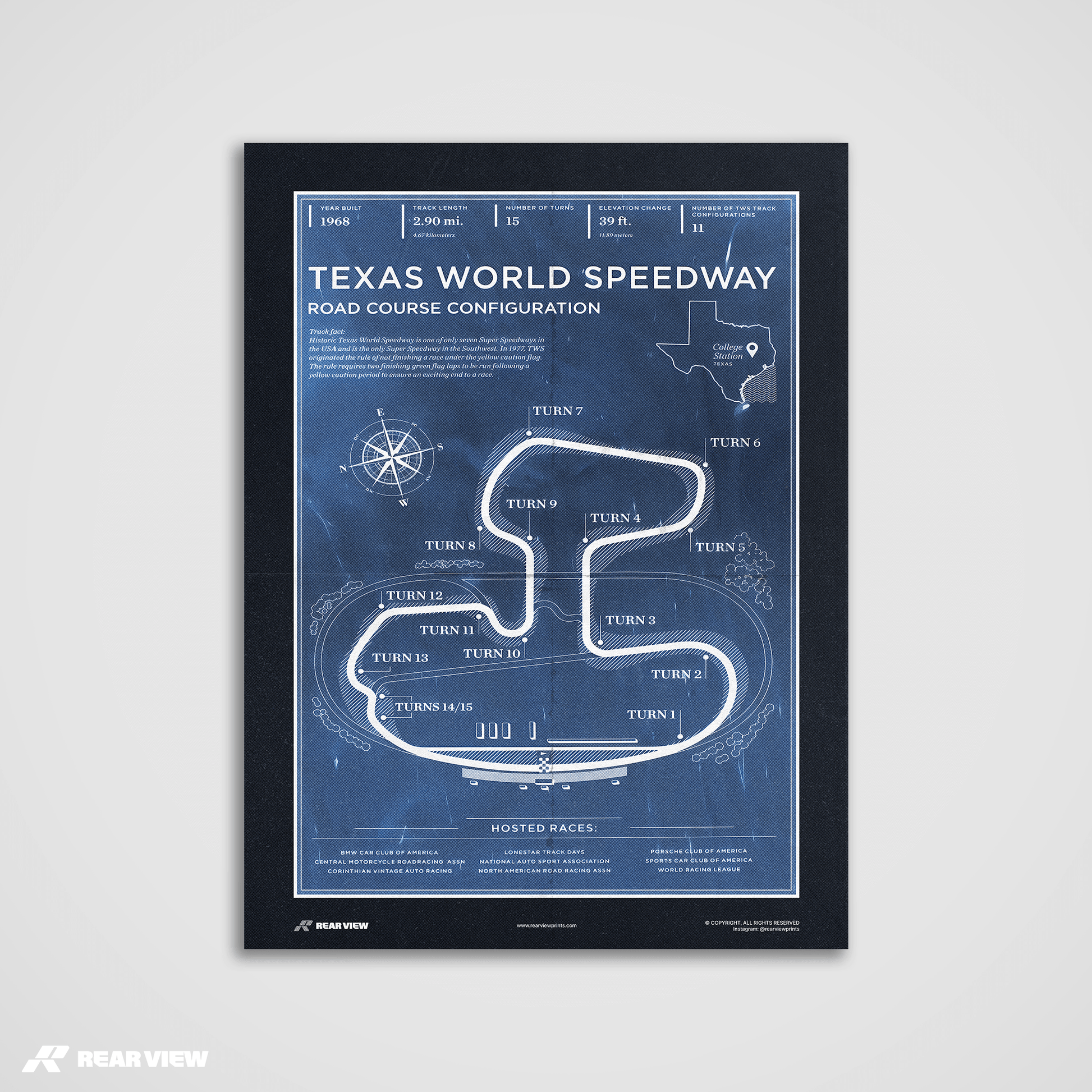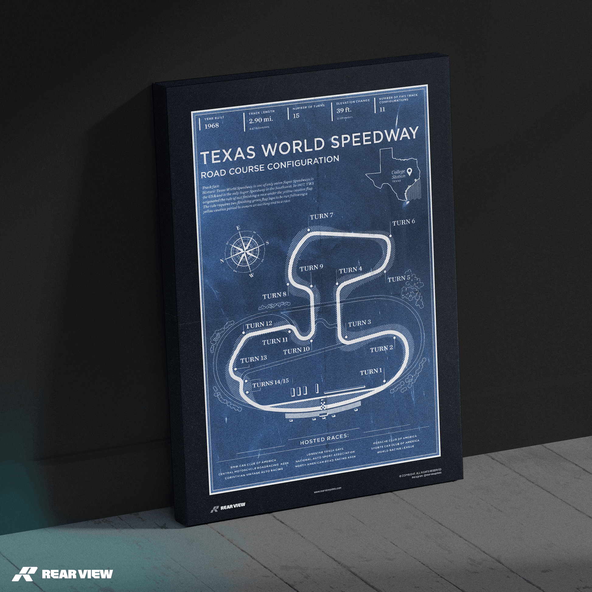 Portate un pezzo di storia delle corse nel vostro spazio. Immergetevi nel fascino degli motorsport con l'iconica Texas World Speedway!