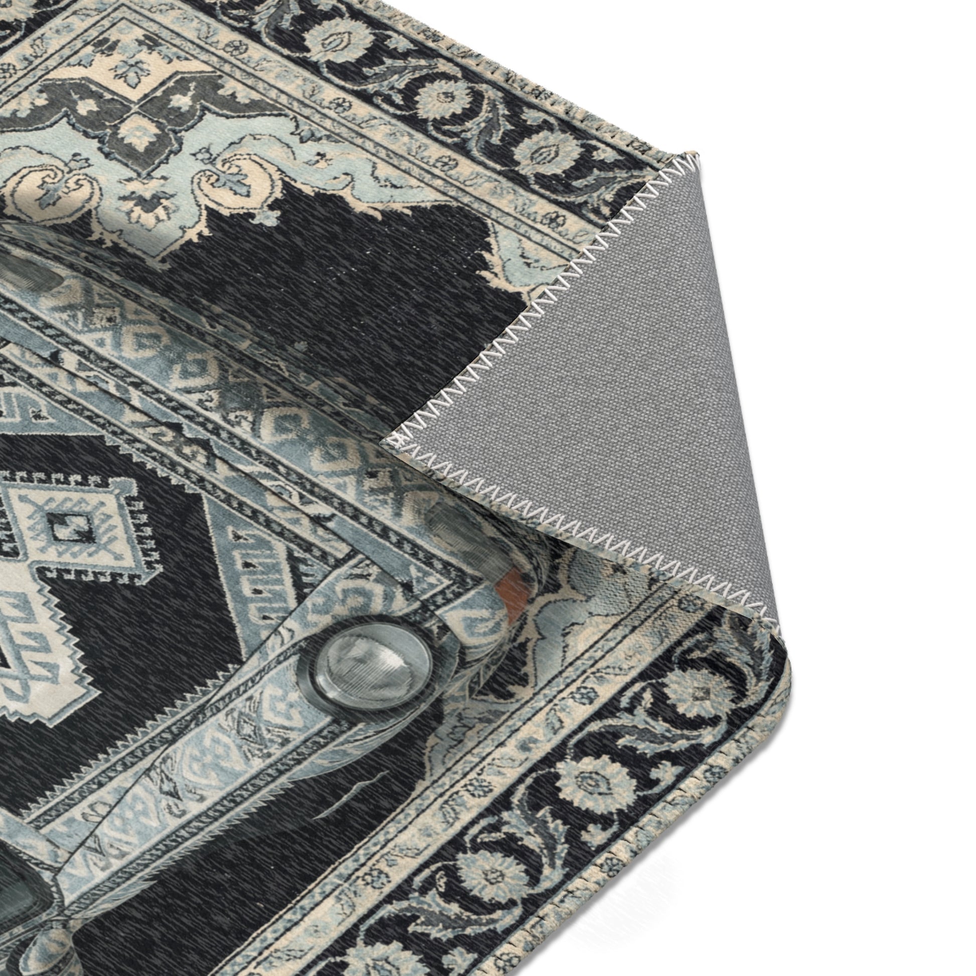 - Soft chenille-textured surface — comfortable underfoot with crisp printed detail