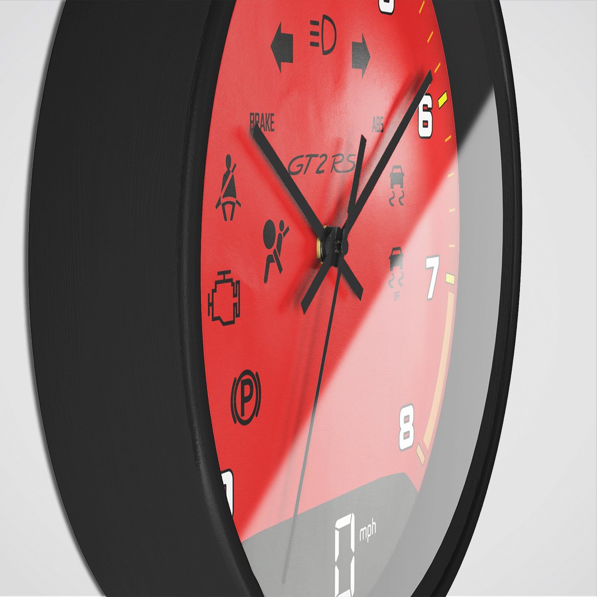 Bring a motorsport touch to your space with a clean wall clock inspired by iconic speed dial layouts. The dial artwork is printed on high-quality paper and mounted flat inside a lightweight modern frame, making it an easy upgrade for offices, garages, or gaming rooms.